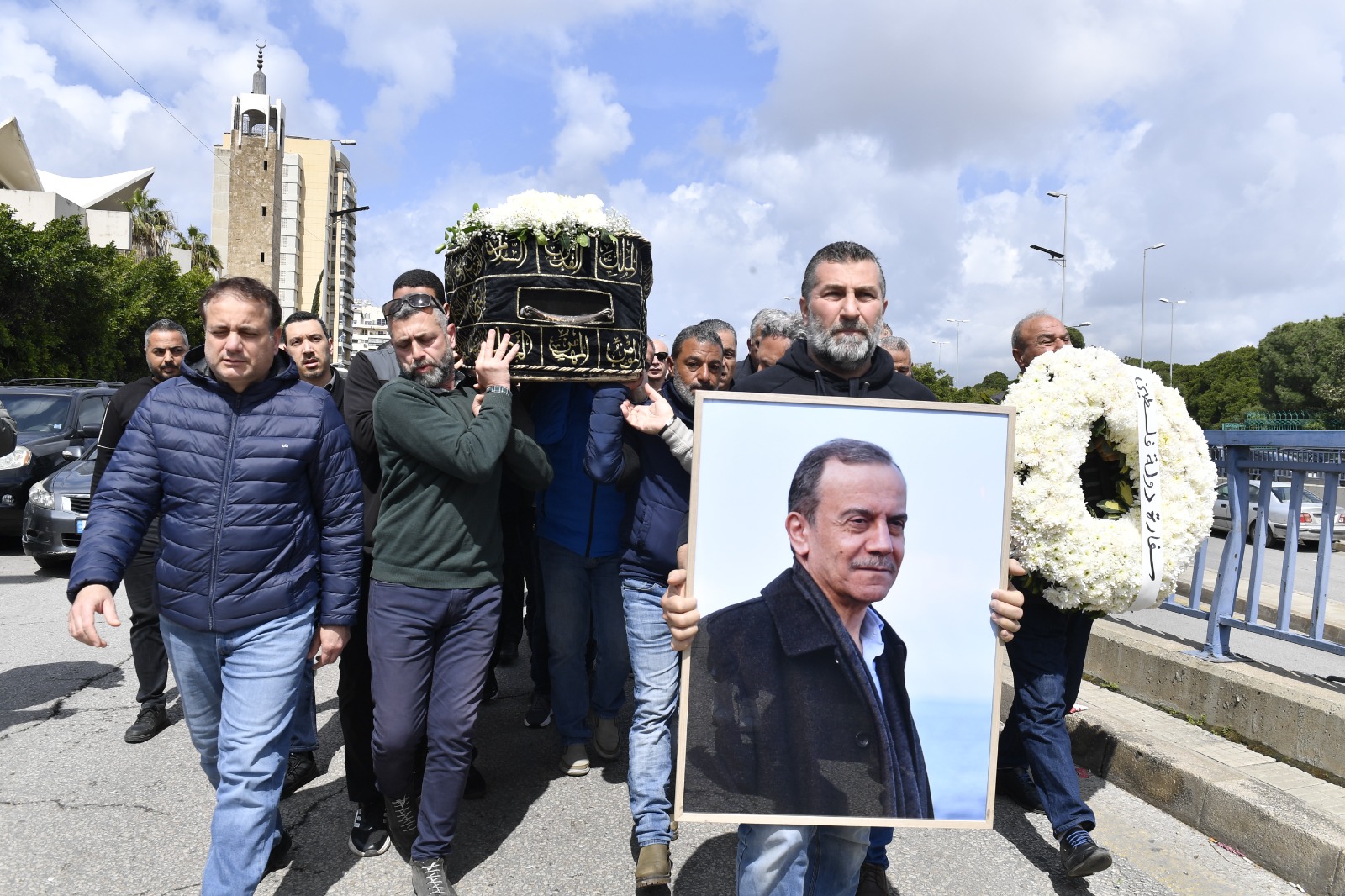 واستُقبل الجثمان لدى وصوله من مستشفى المقاصد، حيث احتشد المشيّعون لتوديع صاحب المسيرة الفنية والنضالية التي امتدت منذ سبعينات القرن الماضي، بمشاركة النائب إبراهيم منيمنة وعدد من الشخصيات العامة ورفاق دربه.